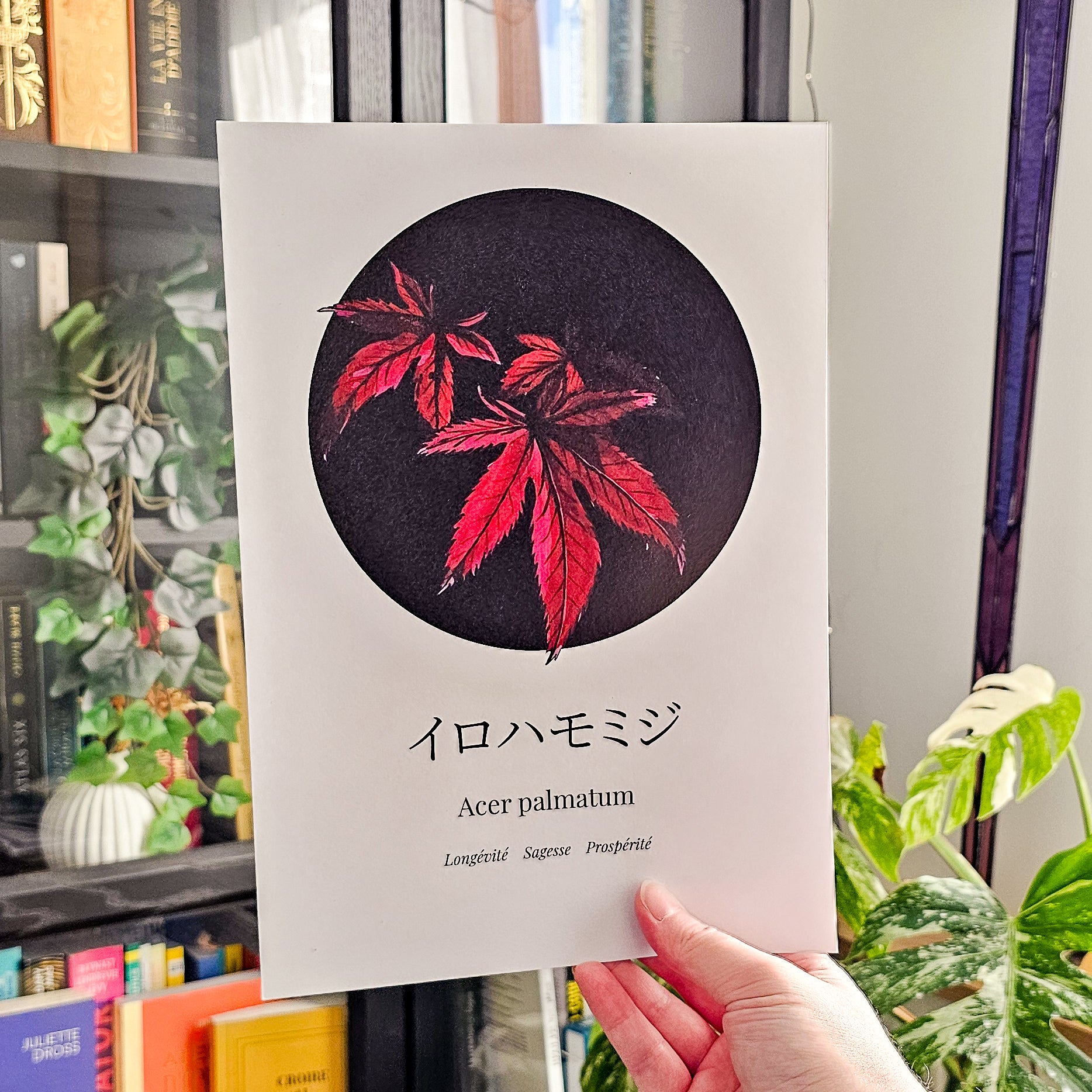 Imagine une feuille si flamboyante qu'elle incarne la sagesse des cycles et la beauté de la transformation. L'érable japonais (イロハモミジ – irohamomiji) est cet arbre. Peinte à la gouache, cette illustration botanique capture l'éclat automnal d'un symbole de longévité, de sagesse et de prospérité, nous rappelant que chaque saison porte en elle sa propre splendeur 🍁