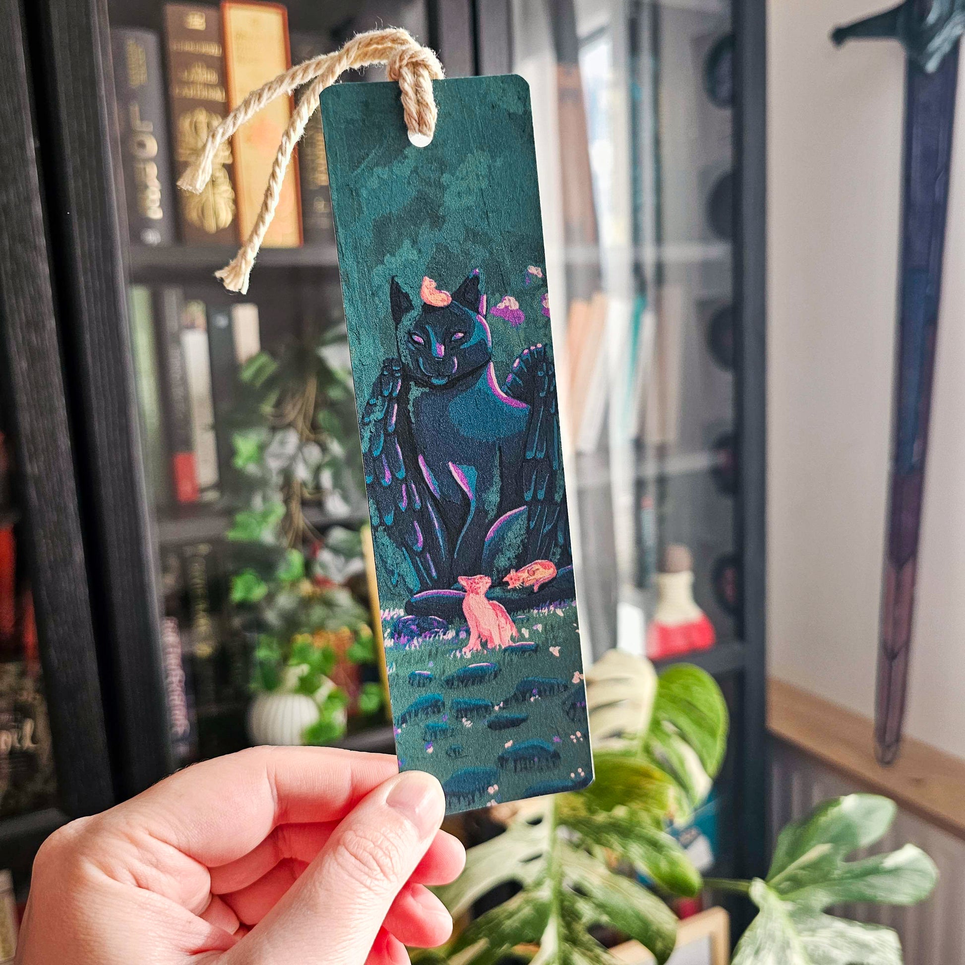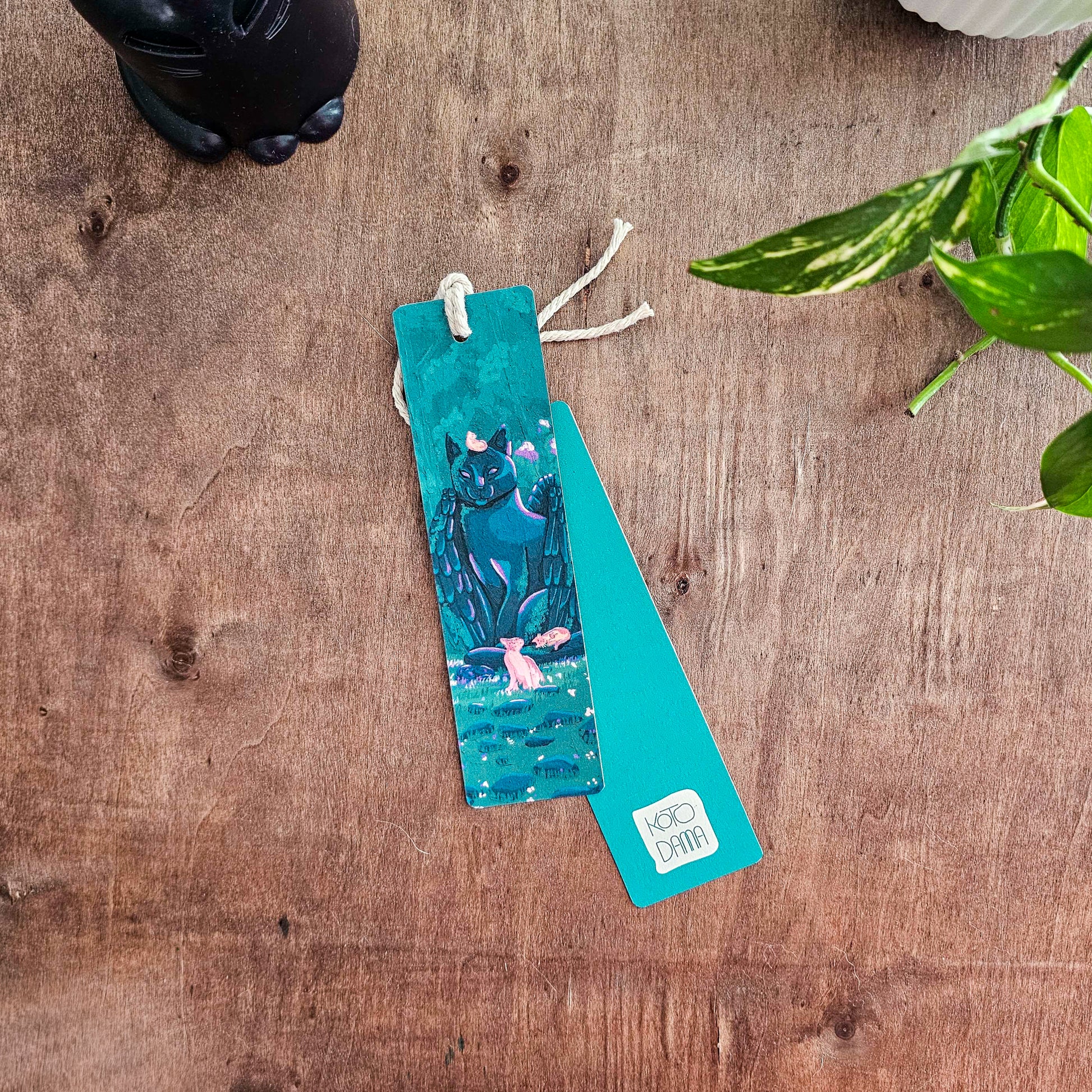 Ne perds plus jamais ta page avec ce marque-page illustré mettant en scène le Tressym, cette créature ailée protectrice issue de l'univers d'un jeu de rôle bien connu ! Entre forêt enchantée et magie féline, ce marque-page aux teintes émeraude et turquoise accompagnera tes lectures fantasy, tes grimoires de jeu de rôle ou tes romans cosy.