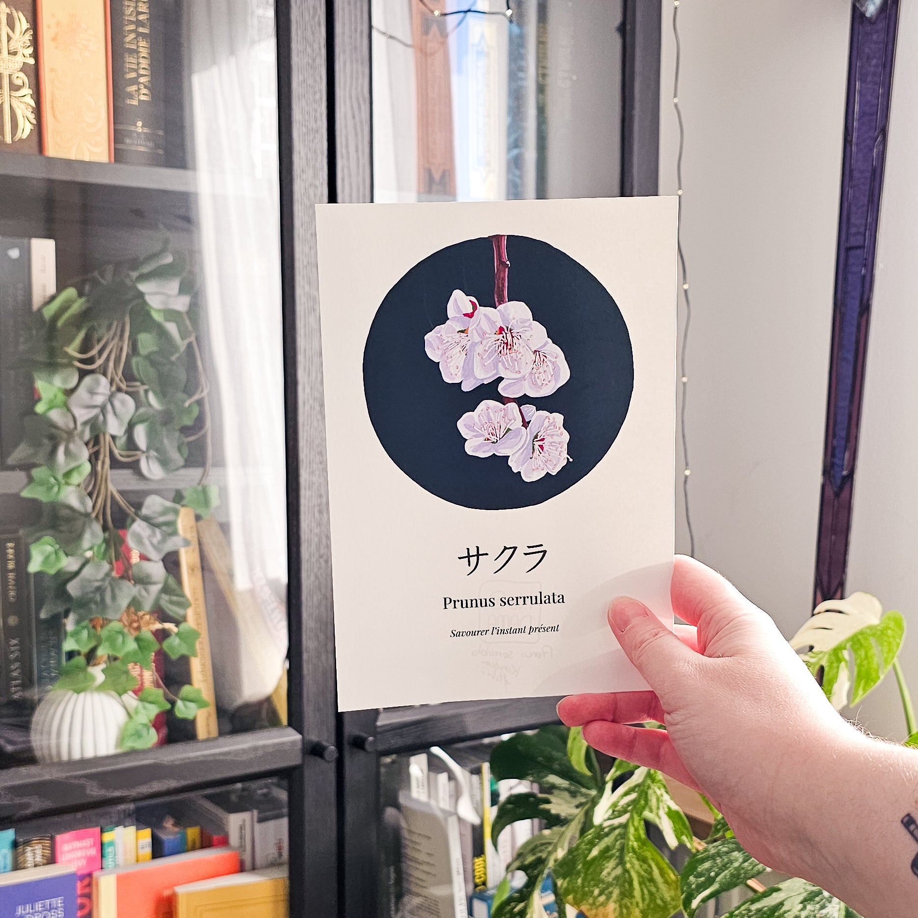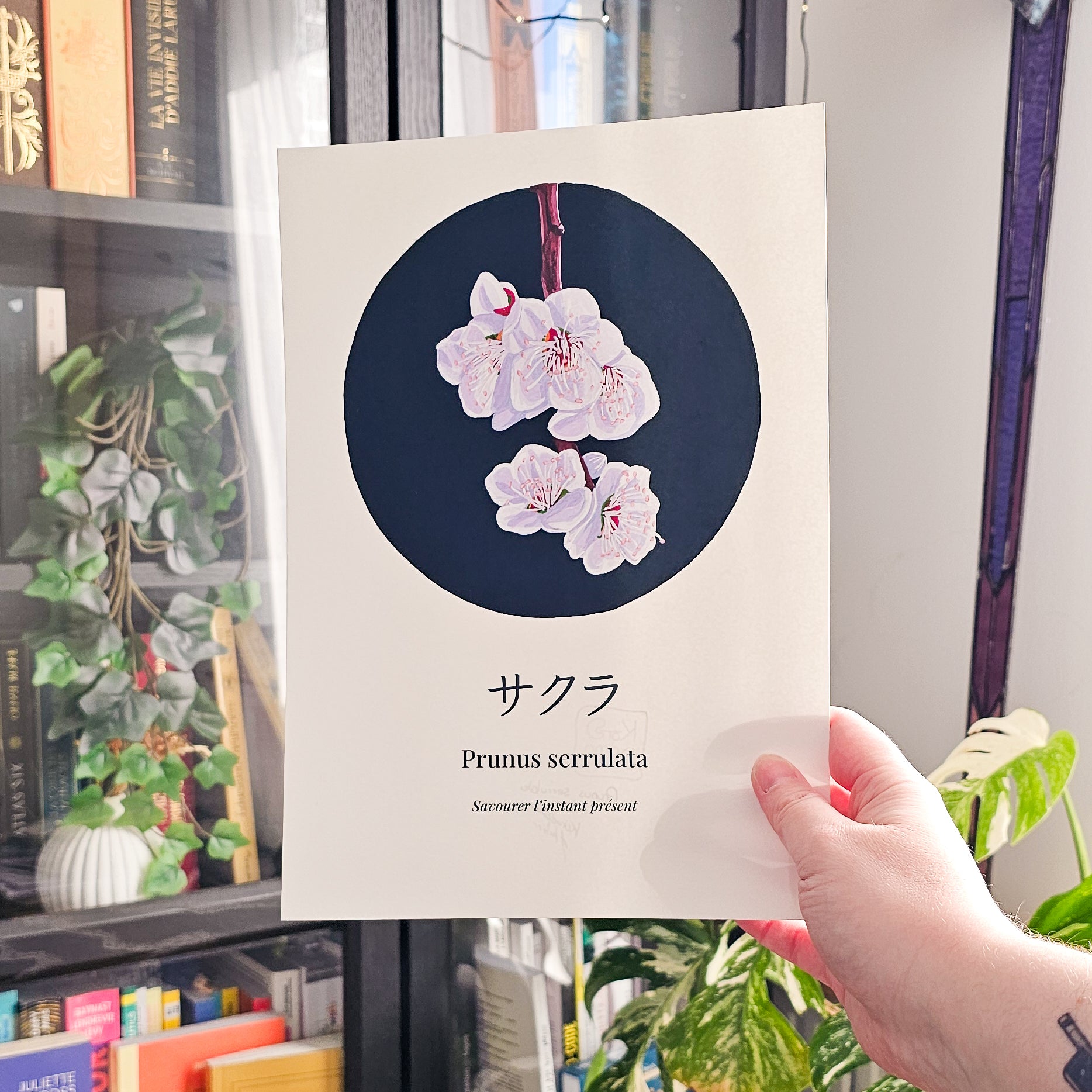 Cette illustration s'adresse aux amoureux de botanique, d'art japonais et de mythologie florale. Elle trouvera naturellement sa place dans un intérieur chaleureux, zen ou inspiré du wabi-sabi